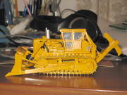 Получил сегодня CAT D9D в 25-м масштабе. Модель добротная, но пластмассовые рычаги и кресло смотрятся грубовато. В остальном отличная модель, редкая и красивая. Правда нормально расположить нитки в лебёдках так и не вышло.