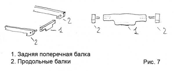 Третья – задняя балка крепится перпендикулярно к будке. См. рис.7.