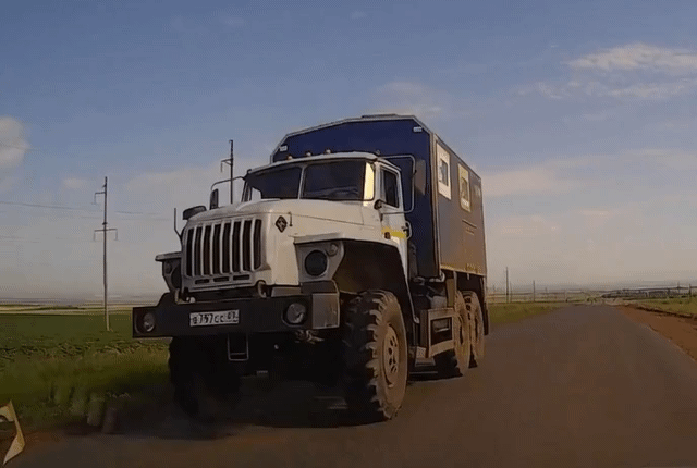 Таких вроде тут еще небыло. Машина с военщины с хранения, будку ставили уже после отдельно. Числится как автобус. Рама удлинена для установки конструкции под запаску.